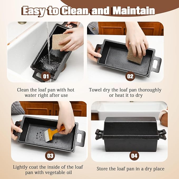 • Wide Application: cast-iron bread pans are safe for all stoves and meet all your cooking needs from soups to stews, baking, baking, frying, grilling, braising, cooking, stir-frying, meat, vegetables, etc; Note: if you find that the non-stick of the pan decreases, re-season it periodically and coat it with a thin coat of oil before heating it in the oven