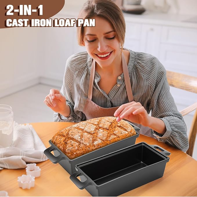 • Exceptional Material Quality: discover the remarkable durability and reliability of this 2 in 1 set of a cast iron bread pan with a lid; Made from cast Iron material, it's designed to withstand repeated use over time; Good for both beginners and pro bakers, this essential is a must-have in any kitchen