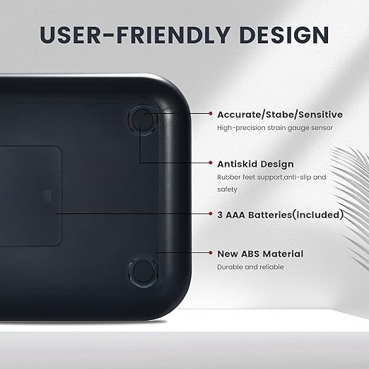 • USER-FRIENDLY TOUCHSCREEN & PREMIUM BUILD: Large color display with backlight provides clear visibility in any lighting. Responsive touch controls (power/tare/unit) simplify operation. Crafted with scratch-resistant tempered glass and anti-slip rubber base for stability, while lightweight ABS housing ensures easy cleaning and storage
