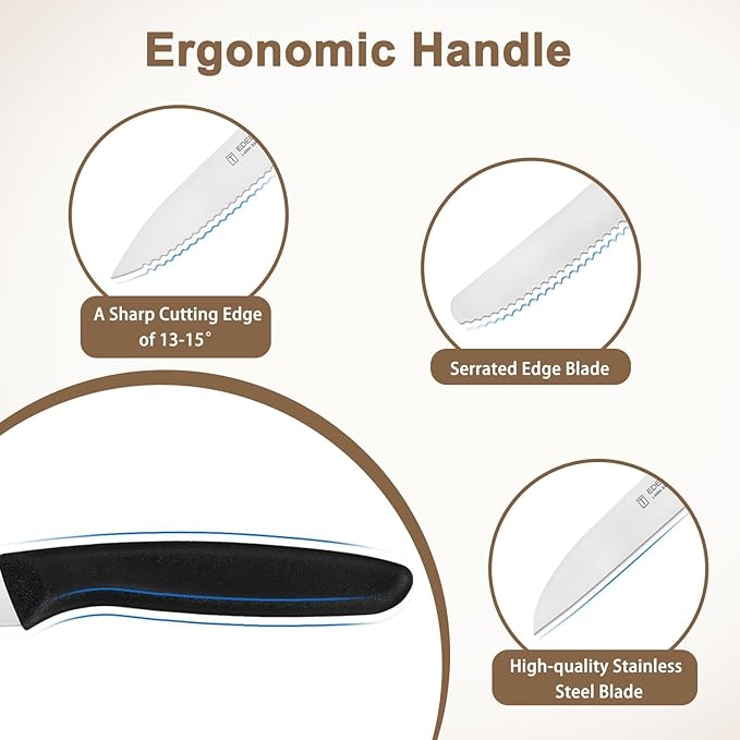 • 【Paring Knives Set】- The Knife Set includes tomato knife X2, straight-edge kitchen knife X2, wavy-edge paring knife X2, Kitchen Knife Set is suitable for various occasions and can cut a wide variety of foods very well