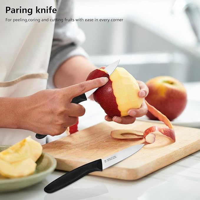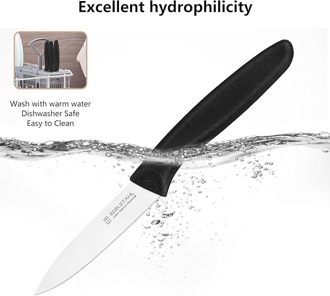 • 【SAFETY&DURABILITY】The handle of the paring knife set,fruit knife is made of polypropylene(PP),a hygienic plastic material that is resistant to impact and high temperatures.It can be cleaned with chemicals and is dishwasher safe.