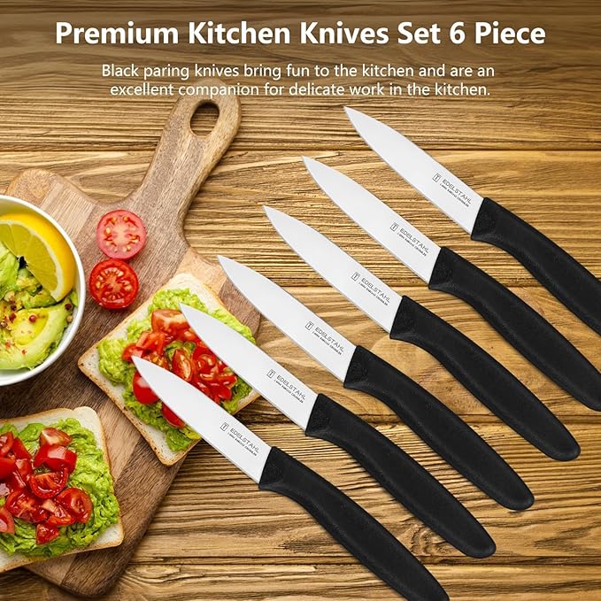 Paring Knife Set of 6,Premium Paring Knives,Stainless Steel Vegetable&Fruit Knifes,Sharp Small Knife Set,Straight Edge Paring Knives Set,PP Plastic Handle Paring Knifes,Black Peeling Knives