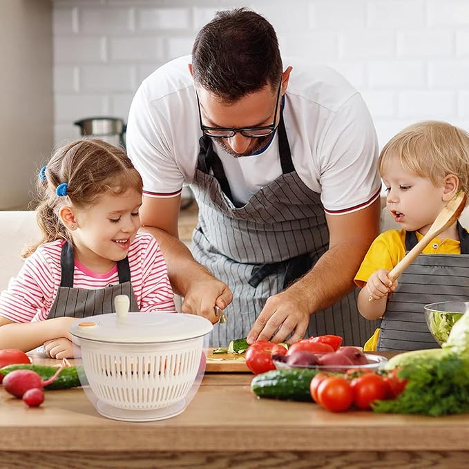 • ✔️【30s Quick Spin Dry Tech】5.3QT transparent bowl with 360° dual-direction spinning mechanism removes 90% water from lettuce/spinach (vs. traditional towel drying) ​BPA-free ABS plastic with wrap-around hand guard & non-slip silicone base prevents cuts