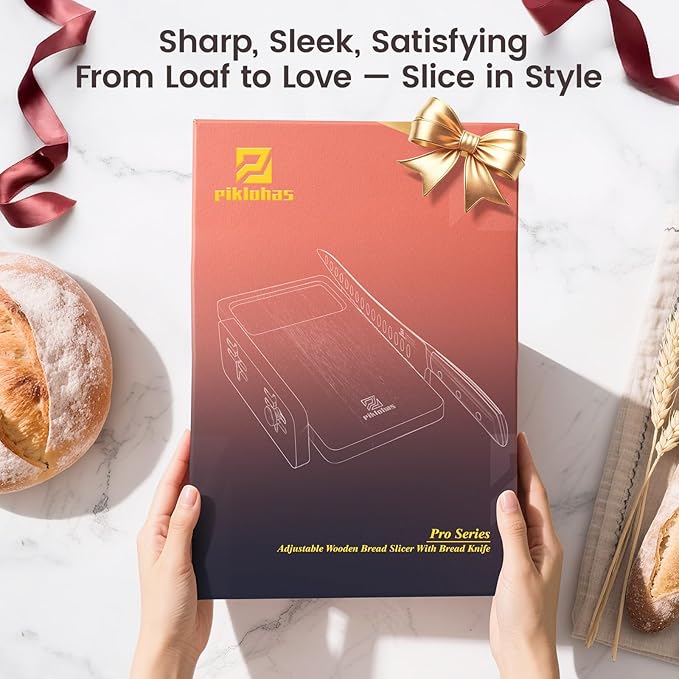 • Bread cutting guide made of FSC-certified wood, non-toxic, BPA-free, and horizontal slice designed to prevent blade scraping against the slicer rack, which could cause debris to mix into the bread and lead to microplastic or bamboo fiber ingestion (research indicates microplastics may trigger metabolic disorders, immune system disruptions, etc.)