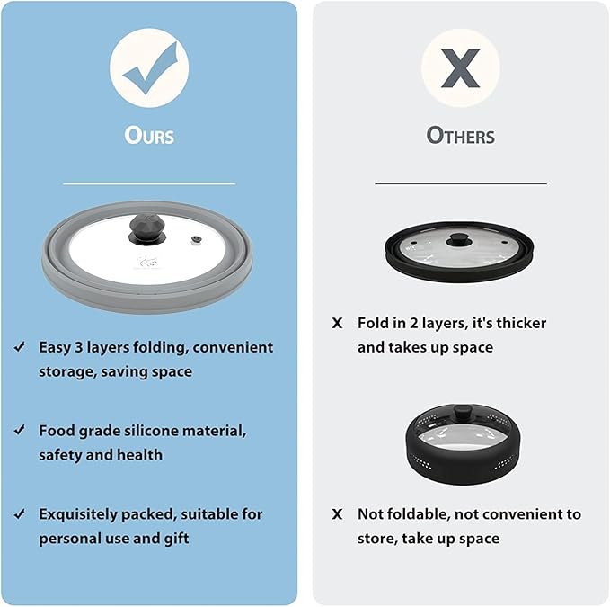• 【UNIQUE HANDLE】: Splatter guard lid with easy grip silicone diamond handle, 100% Tempered glass, 100% food grade, BPA Free and dishwasher safe, It can also be used as a common pot cover, Convenient multi-purpose pot cover.