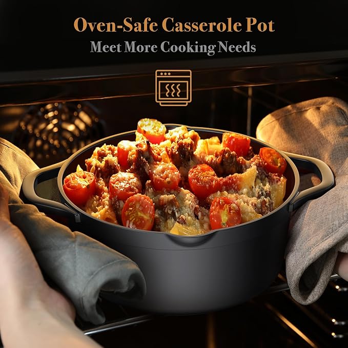 • 10X Nonstick Performance: This pots and pans set features a reinforced double nonstick coating that delivers 10X easier food release. It’s PFOA-free, easy to clean, and ideal for low-oil, healthier cooking—perfect for everyday meals without the mess.