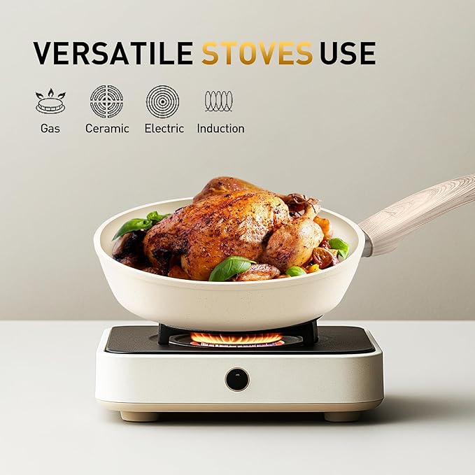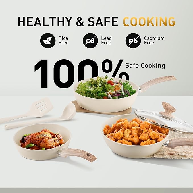 • ๐“๐ก๐จ๐ฎ๐ ๐ก๐ญ๐Ÿ๐ฎ๐ฅ ๐ƒ๐ž๐ฌ๐ข๐ ๐ง ๐Ÿ๐จ๐ซ ๐๐ซ๐š๐œ๐ญ๐ข๐œ๐š๐ฅ๐ข๐ญ๐ฒ: Anti-scald handles keep your hands safe, while the deeper pan shape allows for versatile cooking techniques, from stir-frying to simmering. Versatile cookware set for various cooking methods