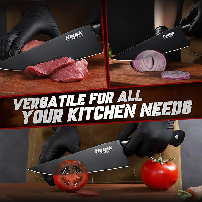 • Japanese Craftsmanship: Huusk gyuto knife combines traditional forging techniques with modern precision, featuring Japanese high-carbon steel for exceptional edge retention and resilience against chipping—engineered to tackle everything from delicate herbs to dense root vegetables