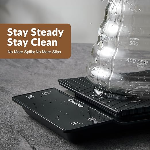 • #SUPERIOR QUALITY MATERIAL# - This Kitchen Drip Coffee Scale is crafted to be sturdy, accurate, safe, and user-friendly. Constructed with a high-quality ABS platform and frame, this digital kitchen scale is durable and easy to clean and maintenance. A waterproof Silicone Non-Slip pad included.