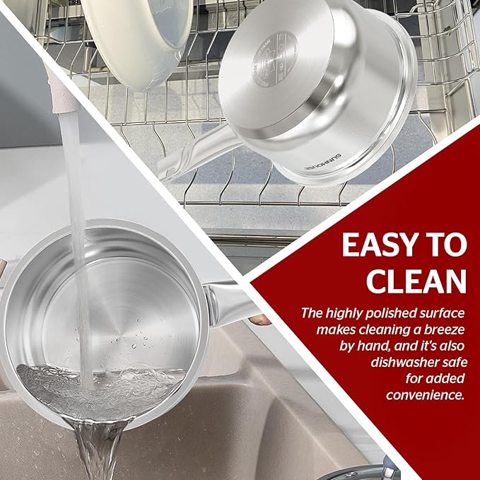 - Dishwasher Safe, No Peeling or Chipping – Unlike traditional non-stick cookware, the Sunhouse Saucepan’s natural surface won’t chip, peel, or wear down. The smooth stainless steel finish wipes clean easily or can be tossed in the dishwasher for quick and no-fuss cleanup.