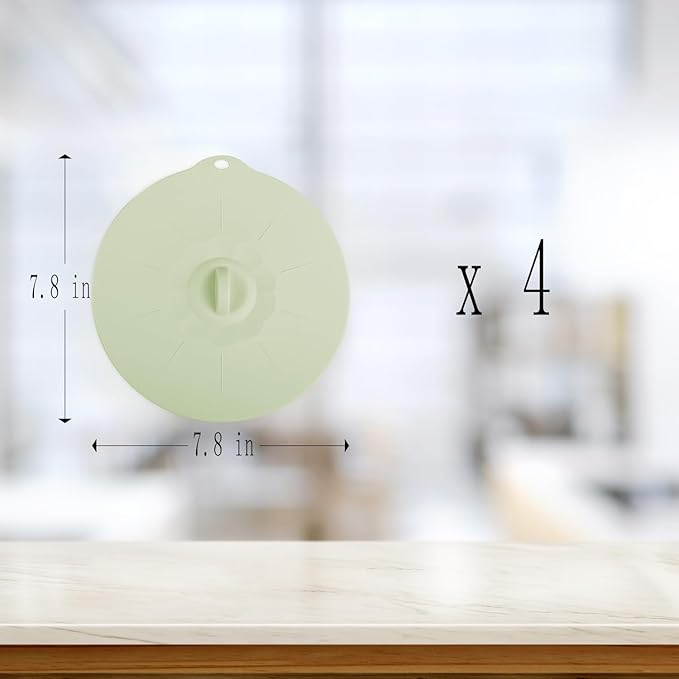 4 Pack 7.8" Silicone Lids for Cups Bowls Plates Pans, Microwave Splatter Cover, Kitchen Containers Lids Cover for Food Storage,Light Green Medium