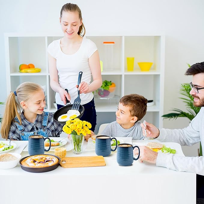 • Functional And Practical: The blue mugs measure 4.7*3.1*4.1inch which is large and deep to hold any of your favorite beverage. With a capacity of 15 oz, these mugs set are perfect size to hold coffee, tea, milk, cocoa, cappuccino and hot chocolate. Suitable for home, office, party, holiday and wedding anniversary