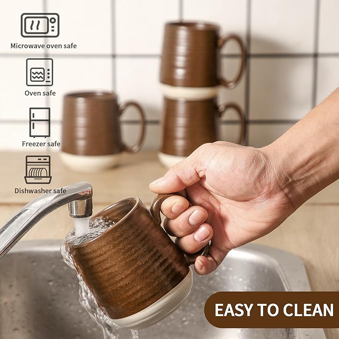 • Food-Grade Porcelain: Our coffee cups are crafted from premium ceramic and finished with healthy glaze, making them chip-resistant, sturdy and reliable. With smooth surface, the large coffee cups set are clean up well in the dishwasher and no need to worry ablut coffee stains