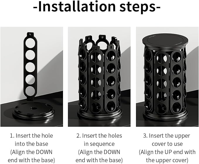 • 【Dimensions】- This convenient space-saving carousel stands at just 13 inches in height and 7.5 inches in diameter. It occupies minimal space, fitting perfectly beside your coffee maker