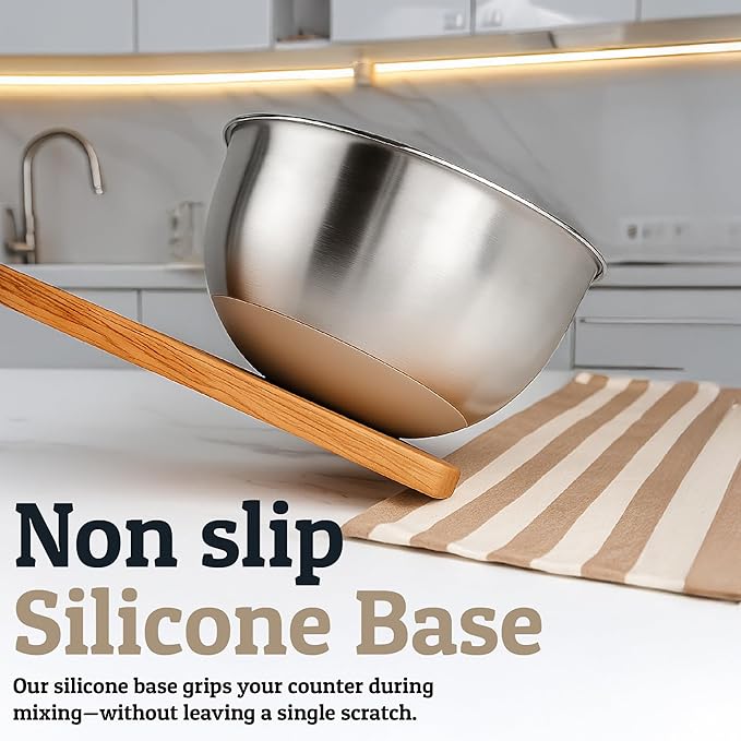 - Includes Free 15-Piece Silicone Utensil Set - This metal mixing bowl set comes complete with a bonus 15-piece heat-resistant silicone utensil collection. Ideal kitchen gift for housewarmings, new cooks, or gift-givers, this set combines everyday utility with thoughtful extras, ready to support every slice, stir, and scoop in your kitchen.