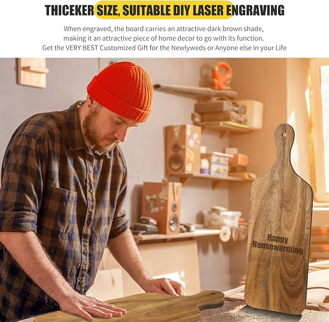 • Exquisite Gift: the smooth surface of the wooden cutting board is ideal for laser engraving, you can engrave meaningful words or designs on it; These decorative cutting board are nice gifts for your friends and family on weddings, anniversaries, housewarmings, Mother's Day, Thanksgiving, Christmas or other festivals