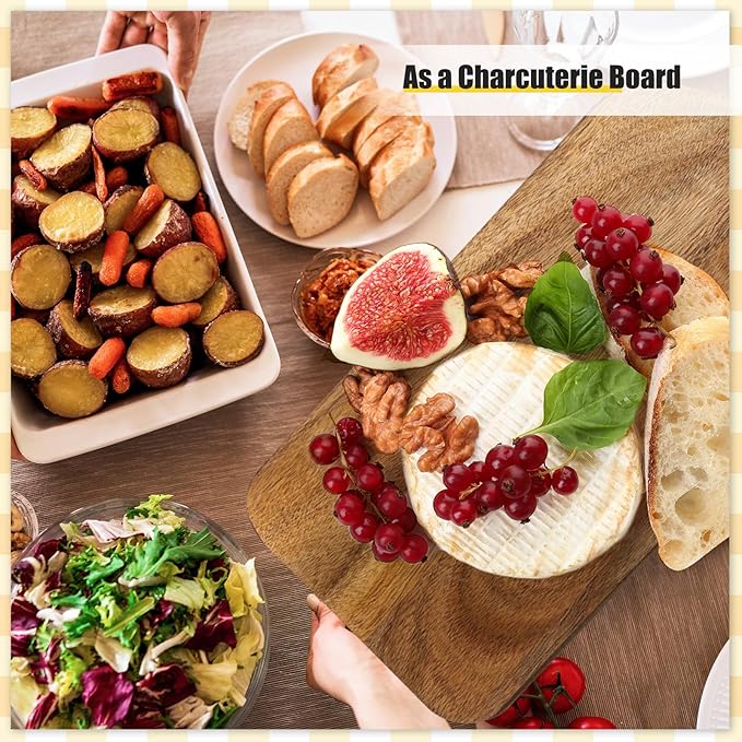 • Wide Application: these wood cutting board features a polished and smooth surface, which is suitable for various food, such as bread, fruits, vegetables, meats, cheeses and more; And the board also can be served as serving trays for cakes, fruits, desserts, pizzas and steaks at catering parties and family gatherings