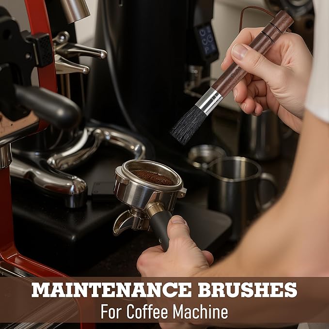• Targeted Cleaning for Each Part: This coffee grinder cleaning brush set includes 2 natural boar bristle brushes tailored for different cleaning needs. Use the grinder brush (dry use) to sweep away loose coffee grounds from grinder trays and surfaces. Use the detail scrub brush (wet use) to deep clean portafilters, drip trays, and espresso machine parts with water. Both brushes feature smooth wooden handles for comfortable grip and precise control.