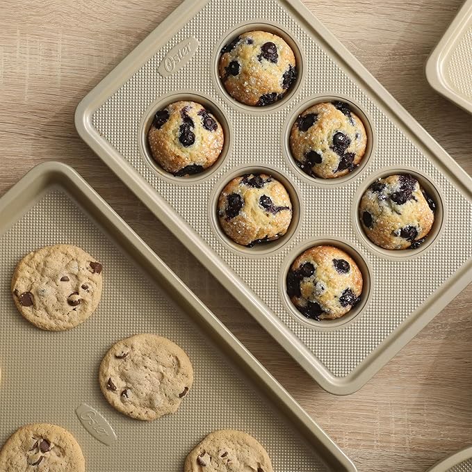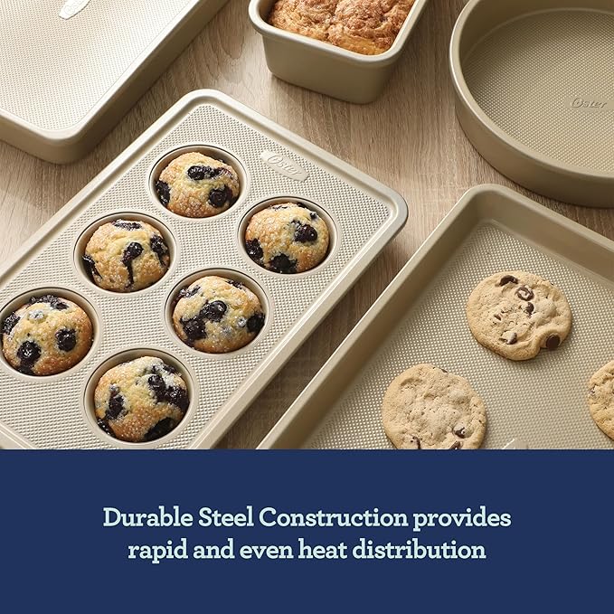 • NONSTICK BAKING PANS: Slick nonstick interior provides a stress-free and residue-free baking experience. It requires less oil and ensures less time to grease and prepare the pans for serving a freshly baked batch of goodies.