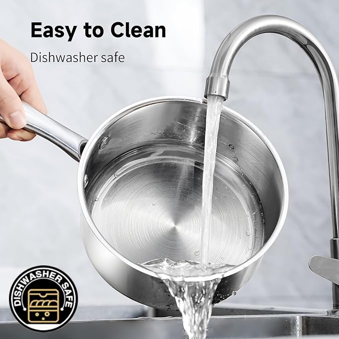 • Suitable For All Stove:Our saucepan work safe on all types of stovetops, including gas, electric, glass, halogen.Oven safe up to 500F, dishwasher safe.
