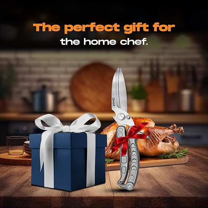 • ULTRA-SHARP BLADES FOR TOUGH KITCHEN TASKS: Engineered with premium stainless steel, these shears effortlessly cut through seafood, poultry, meat, turkey bones, and even tougher foods. Perfect for everyday cooking, meal prep, and handling all your cutting needs with ease