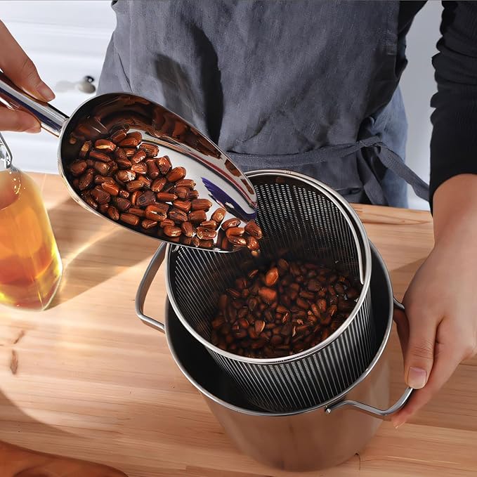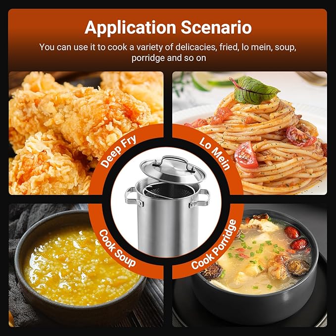 • Convenient Steaming Options: The steamer basket includes a built-in fixing hook, allowing you to hang it on the edge of the pot for steaming vegetables or dip it directly into the pot for boiling. This feature makes it easy to multitask while cooking.