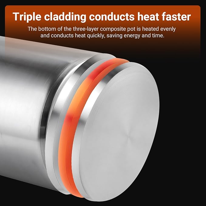 • Efficient Heat Distribution: Crafted with a heavy-duty, warp-free structure, the steamer has a 3-ply base with an aluminum core. This design ensures fast and even heating, making cooking more efficient and reducing cooking time.