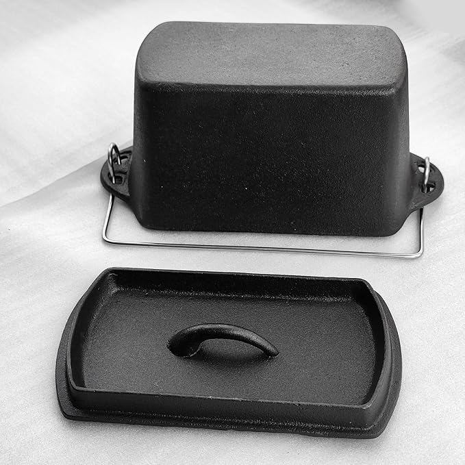 Voulosimi Cast Iron Loaf Oven Pan - 4.33"x4.92"x8.66" Durable Loaf Pans Rectangular Baking Pan with Banneton Bread Proofing Basket set for home baking (Bread Pan with Basket Kit, 2 x 2 QT)