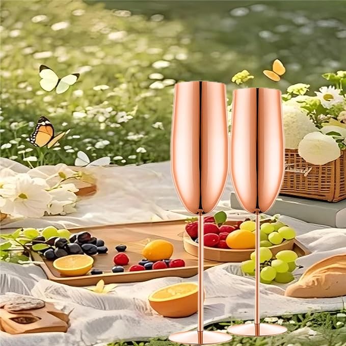 • Durable and sturdy: Our champagne flutes are made of food grade stainless steel material, the electroplated surface resists corrosion, ensuring they remain sturdy and unbreakable. Perfect for repeated use, these metal wine glass are ideal for any occasion