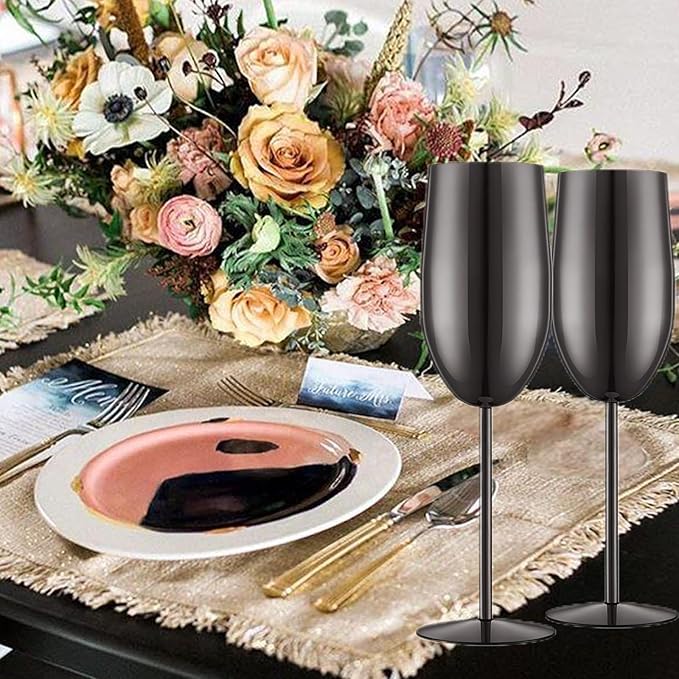 • Durable and sturdy: Our champagne flutes are made of food grade stainless steel material, the electroplated surface resists corrosion, ensuring they remain sturdy and unbreakable. Perfect for repeated use, these metal wine glass are ideal for any occasion