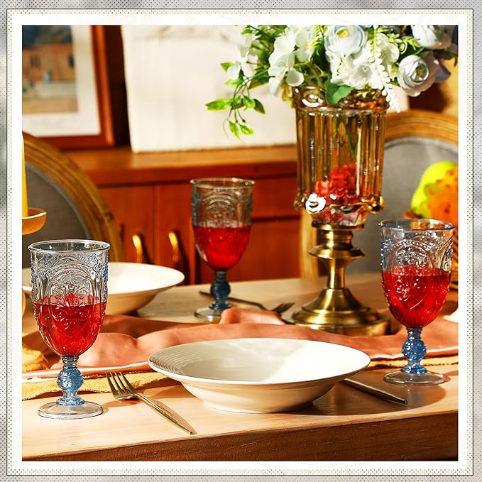 36 Pack Plastic Goblets 10oz Upgrade Vintage Water Goblet Plastic Wine Glasses Colored Retro Embossed Glassware for Party Wine Bar Juice Baby Shower Wedding Reception Grand (Blue)