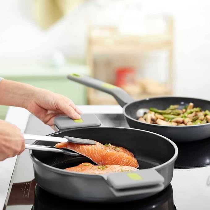 • MODERN & EASY TO CLEAN: A gray finish with green inserts gives this casserole a modern style. The removable silicone handles bring a safe & comfortable grip. It is easy to clean & dishwasher safe
