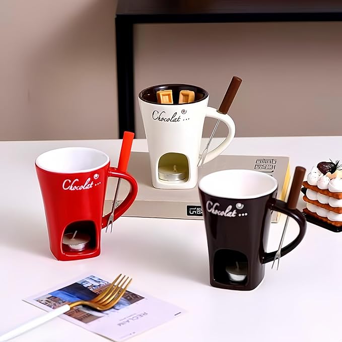 Chocolate Melting Mug Cheese Candy Mini Fondue Pot With Forks (Brown)