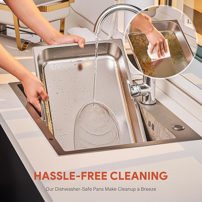 • Easy to Use & Maintain: The scald resistant handles provide comfortable and sure grips to let you move dishes around with great ease, while the dishwasher-safe pans and lids make cleanup a breeze