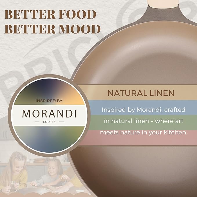 PRICUSIS Nonstick Frying Pan with Lid, Healthy Skillet, Egg Pan Nonstick Omelet Pan Chef's Pan, PFOA & PTFE Free, Induction Compatible (10 Inch W/L Natural Linen)