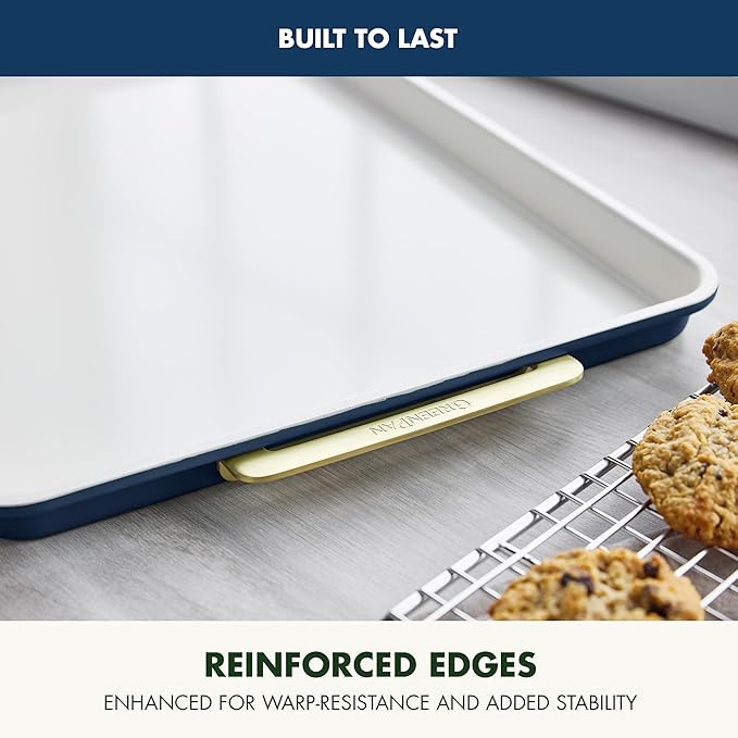 GreenPan Bakeware 13"x18" Half Baking Sheet Pan, Ceramic Nonstick Baking Pan, PFAS & BPA Free, Gold Handles, Durable Steel, Versatile & Space Saving Ovenware, Freezer to Oven Dish, Oxford Blue