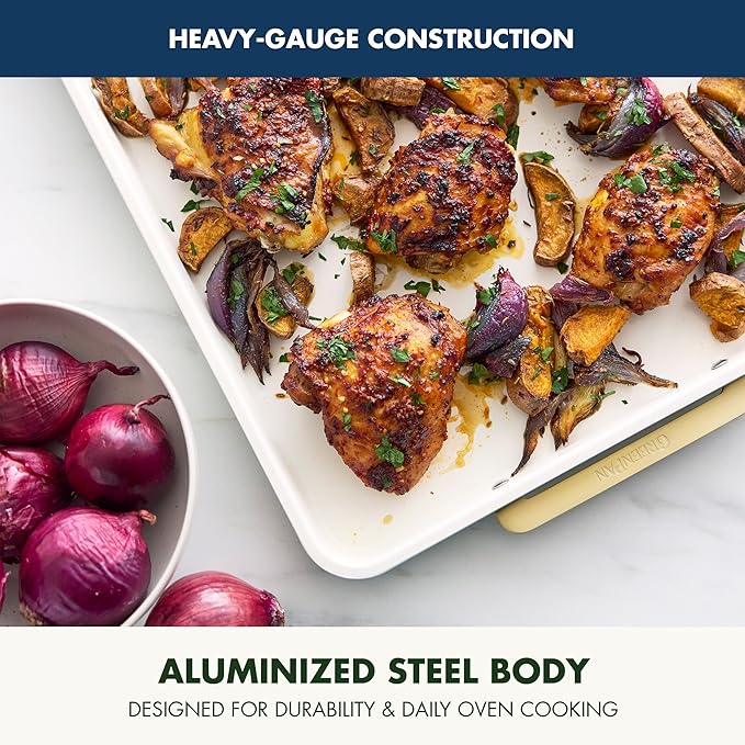 • HIGH-HEAT & EVEN HEATING – Oven and broiler safe up to 550°F, this bakeware ensures superior heat conduction for perfectly baked, roasted, and crisped results every time.
