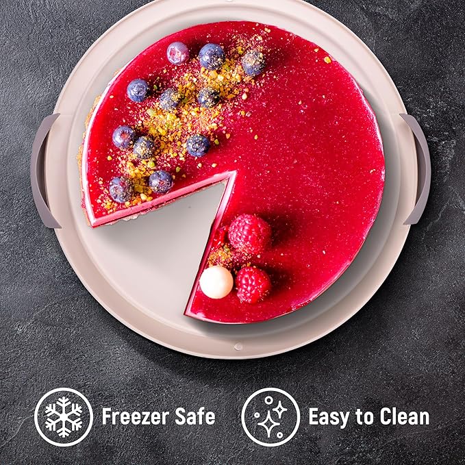 • This circular cake serving container features an easy-to-clean surface and is perfect for taking your favorite desserts and baked treats on-the-go.