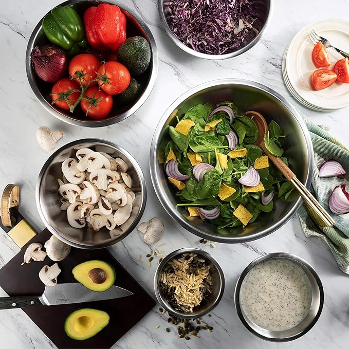 • 【Versatile Mixing Bowl Set】With A range of 5/6 Sizes, metal mixing bowls add versatility and functionality to your kitchen.