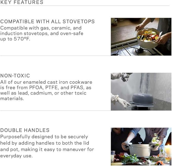 • Compatible: The Oven Pot is compatible with all stovetops and is oven-safe up to 570ºF.