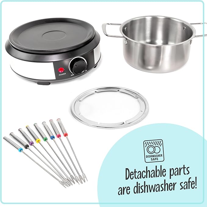 • VERSATILE FONDUE EXPERIENCE: Enjoy a wide variety of fondue recipes with our electric fondue pot set. Create delicious desserts or savory appetizers with ease, making it an ideal choice for entertaining guests or spending quality time with family.