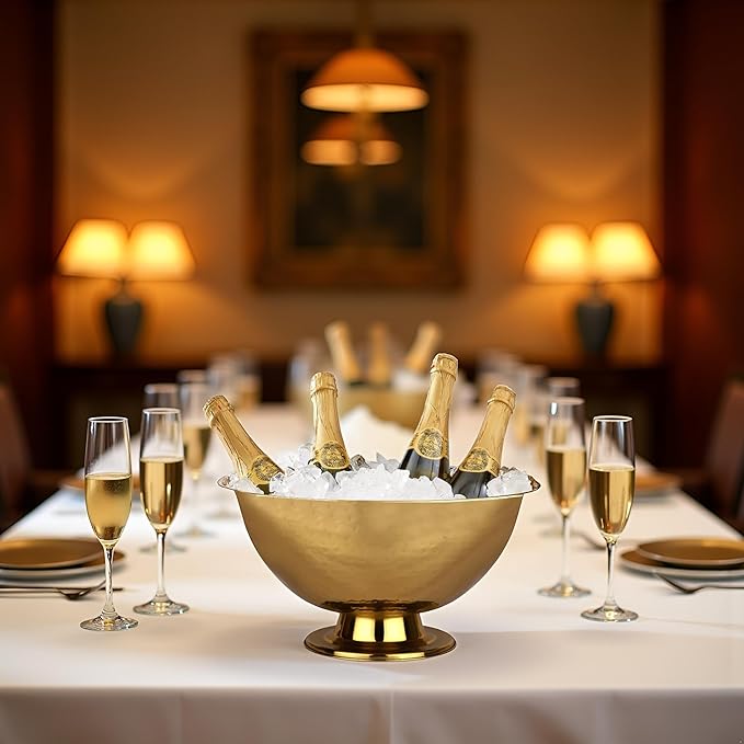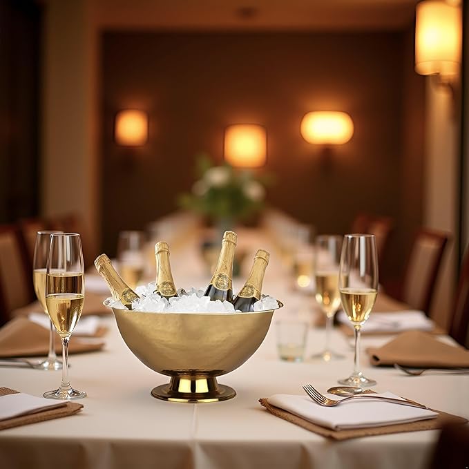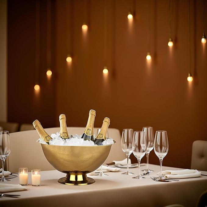 Cruiser’s Caché 16" Footed Champagne Bucket, Beverage Tub, Wine and Champagne Server, Stainless Steel with Gold Hammered Finish