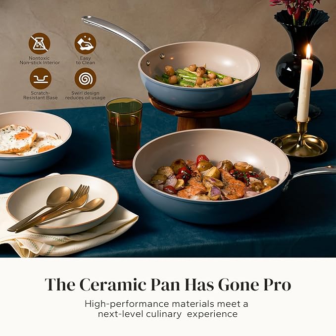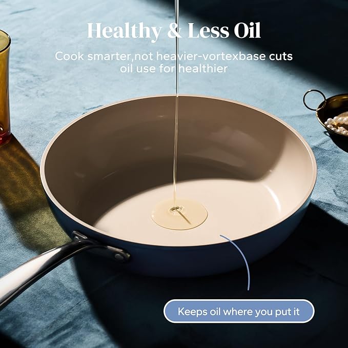 • NON-TOXIC & FOOD-SAFE COATING: PFAS-free ceramic coating made with food-grade materials, rigorously tested to exclude PFOA, PTFE, lead, and cadmium. Safe for daily family cooking