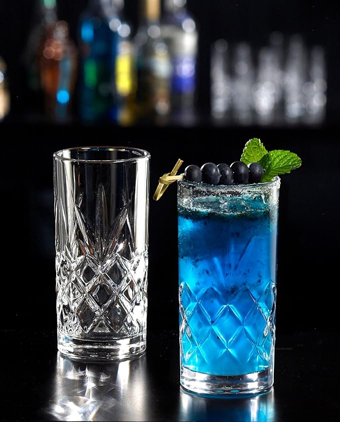 • Premium Drinking Glasses – This highball glasses set for kitchen, dining room, and hosting use holds 12 ounces of liquid making it perfect for cold beer, water, or soda.
