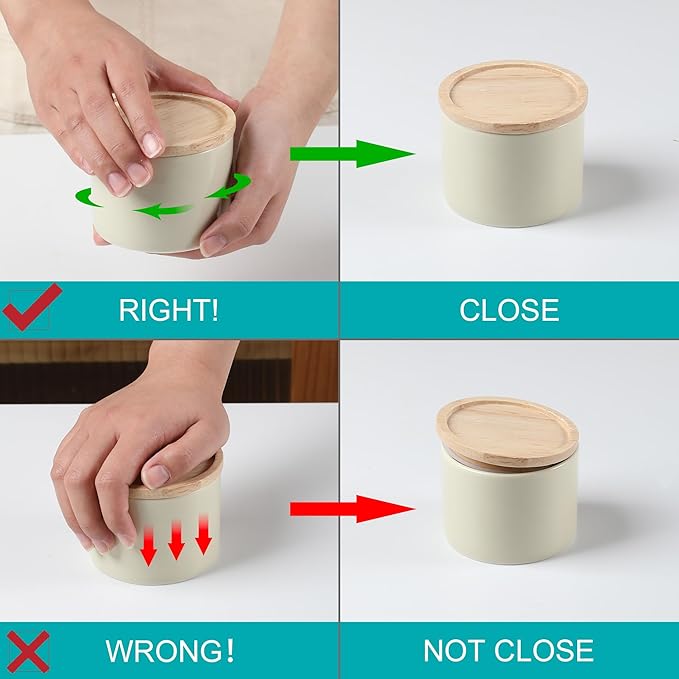 • PROFESSIONAL MATERIAL - Sweejar food storage containers are made of food grade, smooth porcelain. The containers with wooden lid and rubber seal to ensure a true airtight seal and lightproof. They are good for maintaining food and seasoning fresh.