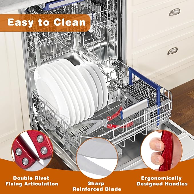 • Easy to Clean & Dishwasher Safe – Designed for convenience, the stainless steel kitchen scissors are dishwasher safe, making cleanup effortless. The rust-resistant, corrosion-proof material ensures they stay sharp and in excellent condition for years. Whether washing by hand or in the dishwasher, these shears maintain their pristine quality, making them an essential, low-maintenance tool for any kitchen.