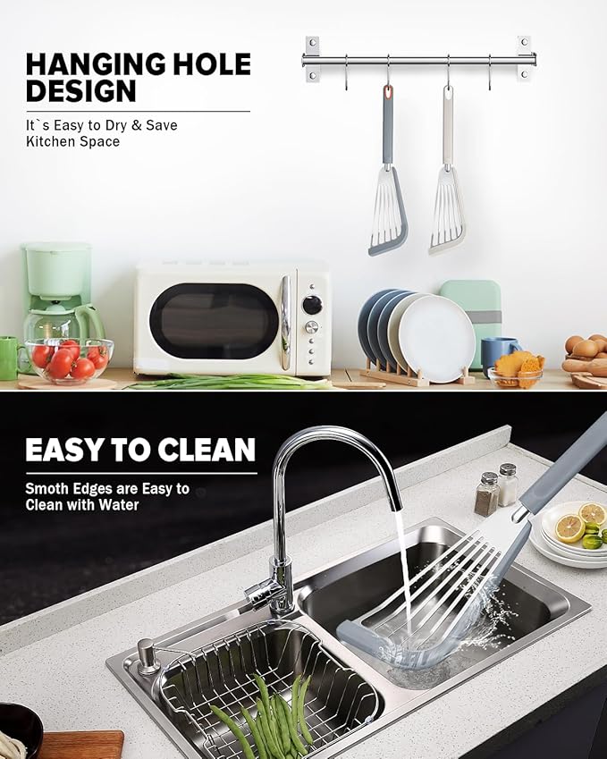 • [Easy to Clean and Store] Silicone fish spatula is easy to clean by hand wash and dishwasher safe. The top hanging hole design is convenient for storage, you can hang it up after cleaning to keep it dry.