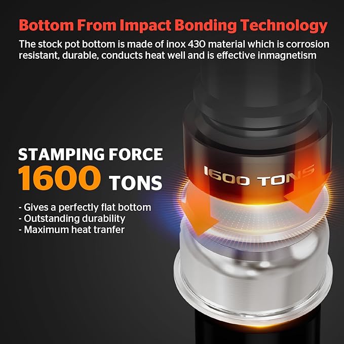 - [PREMIUM QUALITY & VERSATILITY] – Made from high-quality, non-toxic, and non-allergenic stainless steel, this heavy-duty stockpot is built to last. The 3-ply base ensures even heat distribution, making it compatible with gas, induction, ceramic, glass, and halogen cooktops. Whether you're cooking for your family or catering for large groups, this pot meets all your culinary needs.