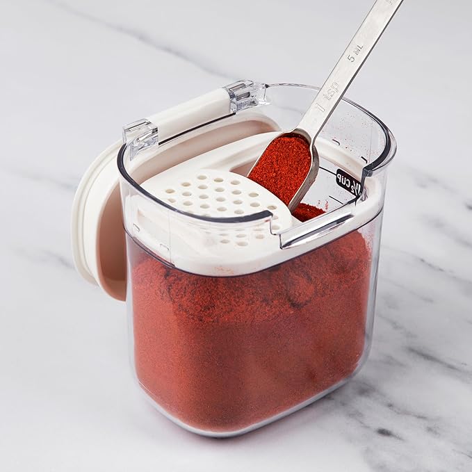 • Accessory-Rich for Smart Storage – Comes with built-in magnetic tools like a leveling bar, measuring/dusting spoon, and removable terra cotta tamper to keep brown sugar soft. All accessories store neatly under each lid for space-saving efficiency.