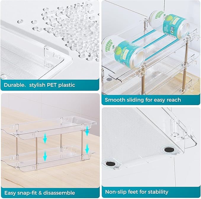 • Effortless Access with Sliding Feature: Each shelf is designed with a sliding feature, allowing cans to glide out smoothly for easy access. No more struggling to reach the back of your pantry